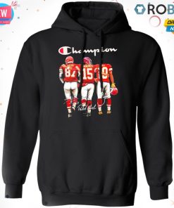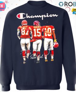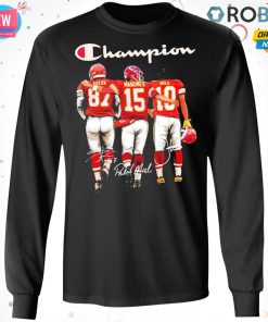 Travis Kelce Patrick Mahomes and Tyreek Hill Mvp Champions signatures T-shirt – Hoodie – Ls