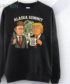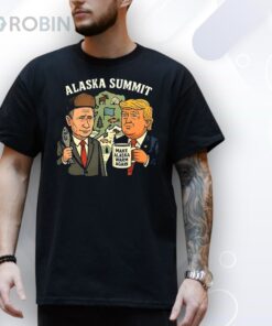 Looking for a conversation starter? This shirt features a whimsical design of two political figures at an Alaska Summit, holding a cheeky mug that says Make Alaska Warm Again. Perfect for those who enjoy political satire and humorous graphics, this print is bound to spark discussions and smiles. Ideal for adding a touch of wit to your wardrobe or as a quirky gift for politically savvy friends.