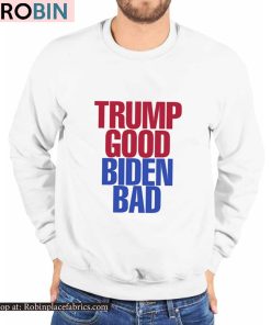 The Trump Good Biden Bad Unisex Shirt is a bold and eye-catching piece of apparel that speaks to the wearer’s political views. With its simple yet powerful design, it makes a statement about where the wearer stands on current political affairs. The shirt is unisex, making it suitable for people of all genders, and is made from high-quality materials for a comfortable fit. Whether worn to a rally, protest, or just out and about, this shirt is sure to turn heads and spark conversations.