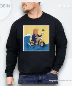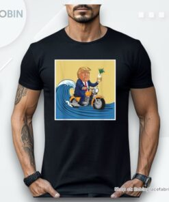 Get ready to elevate your style with our unique and eye-catching design featuring a poster of Trump surfing on a bike with a drink in hand. This one-of-a-kind shirt is the perfect way to show off your individuality and sense of humor. Stand out from the crowd and make a statement with this fun and playful design. Perfect for anyone looking to add a little bit of personality to their wardrobe. Don't miss out on this must-have piece that is sure to turn heads wherever you go!