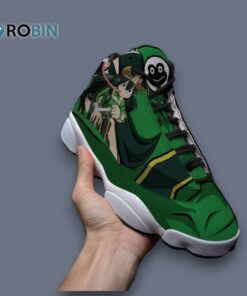 Step into style with these anime-inspired Jordan 13 sneakers! Featuring a unique design, these kicks are perfect for showing off your love for your favorite froggy hero. Get yours now and leap into action! #anime #sneakers #MyHeroAcademia