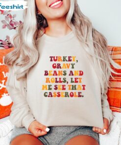 Turkey Gravy Beans And Rolls Let Me See That Casserole Sweatshirt, Thanksgiving Fall Shirt , Long Sleeve Cotton, Hoodie