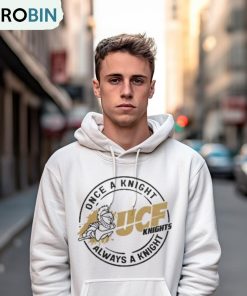 The UCF Once A Knight Always A Knight T-Shirt is a must-have for any loyal fan of the University of Central Florida. The shirt showcases the iconic UCF Knights logo, boldly displaying their team pride. With its comfortable fabric and stylish design, this shirt is perfect for game days or everyday wear. It is a testament to the undying spirit and commitment of UCF fans, reminding everyone that once you become a Knight, you will always be a Knight. Show your support for UCF with this timeless and classic t-shirt.