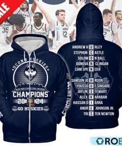 Uconn Huskies NCAA Mens Basketball National Champions 2024 Go Huskies Hoodie Navy details