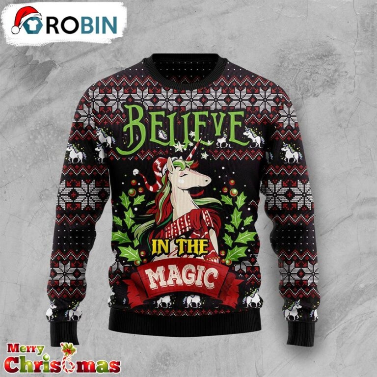 Unicorn Believe In The Magic Ugly Christmas Sweater – Retro Christmas Sweater RB4197 images