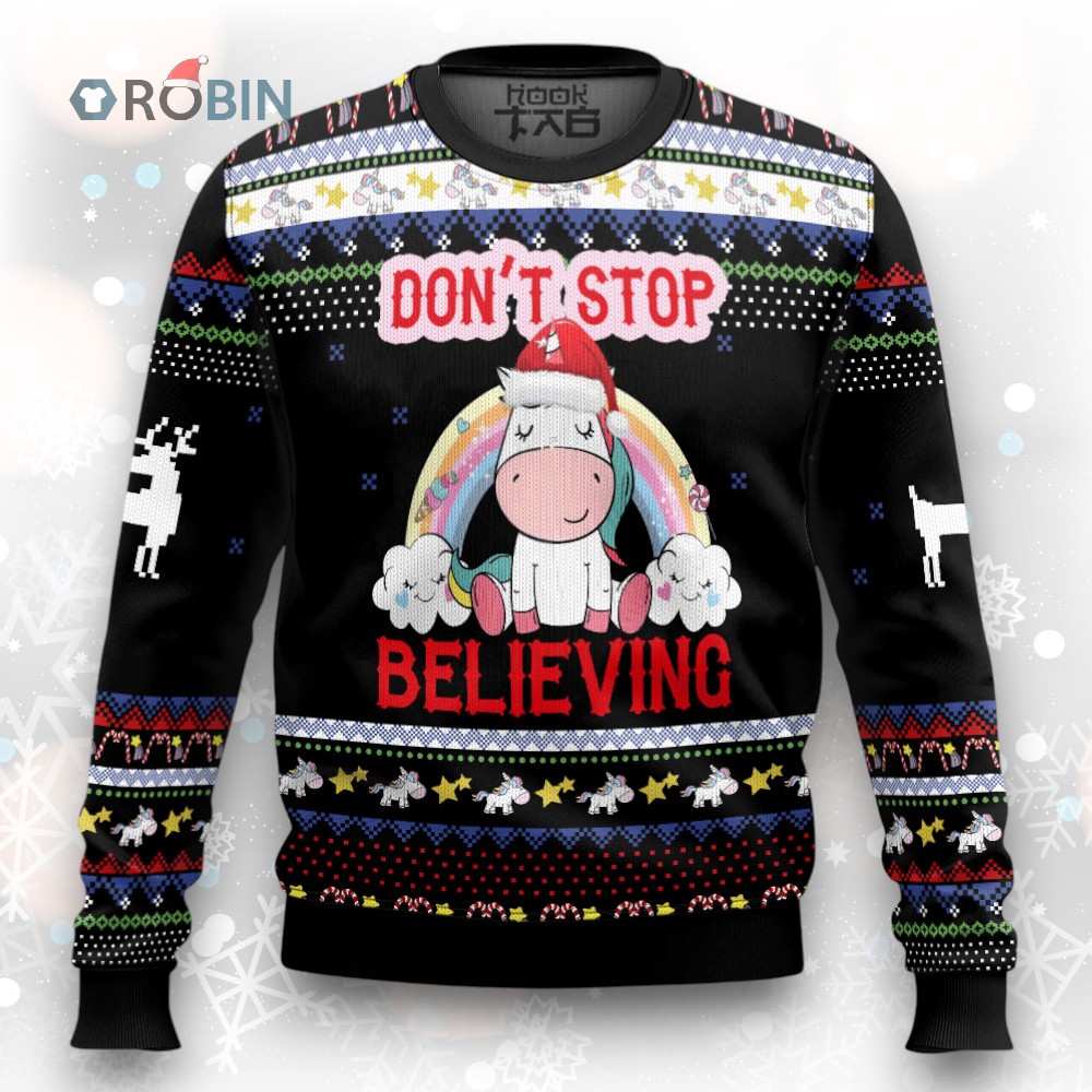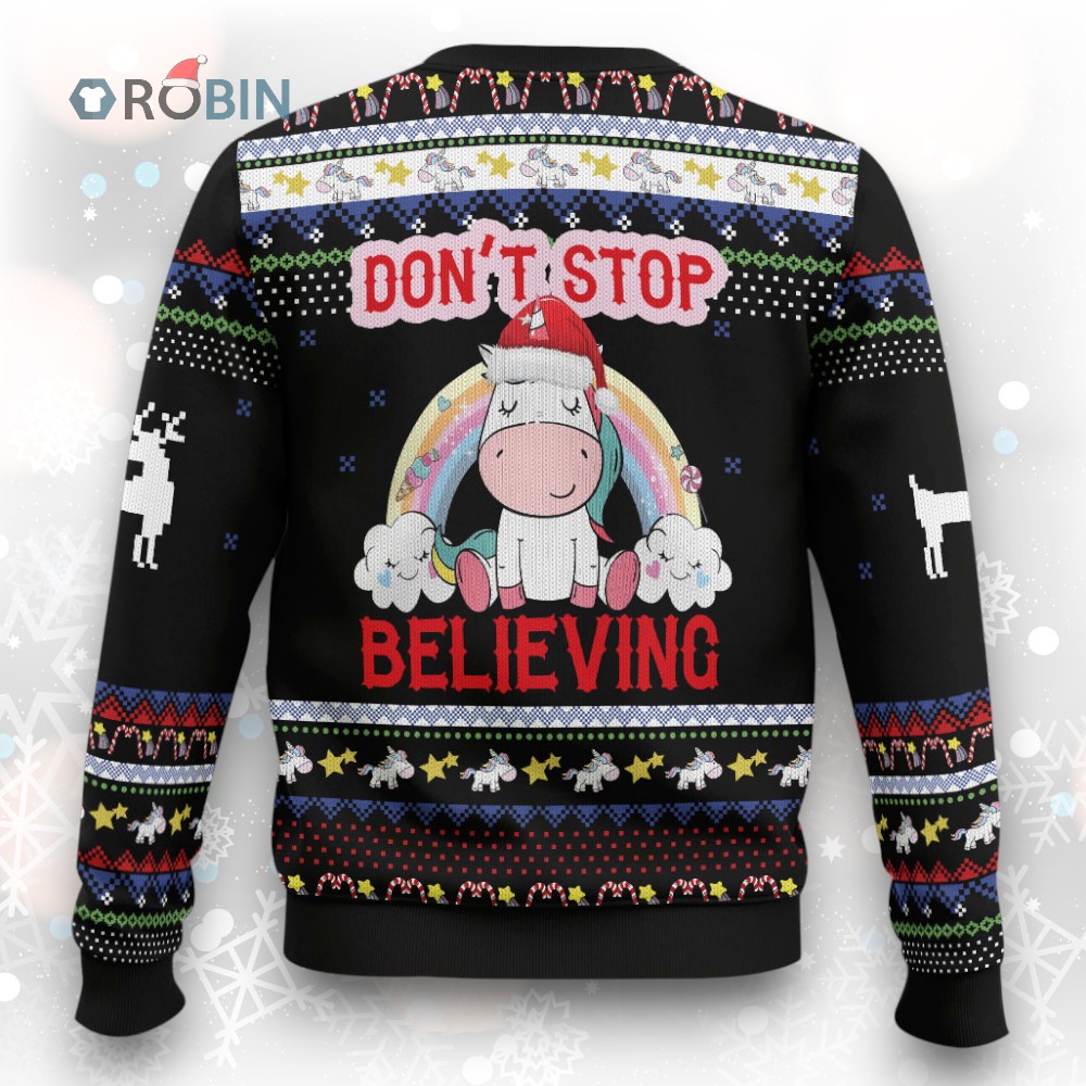 Believe in the magic this holiday season! ✨ This festive and cozy sweater is perfect for spreading Christmas cheer. Featuring a whimsical design, it's sure to be a conversation starter at any holiday gathering. Get yours now and add a touch of enchantment to your wardrobe! 🦄🎄