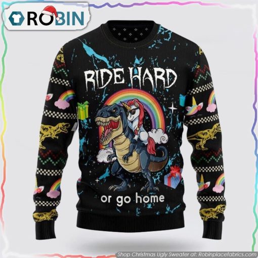 Unicorn Dinosaur Unicorn Ride Hard Christmas Ugly Sweater details