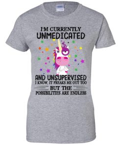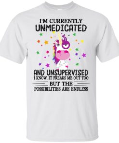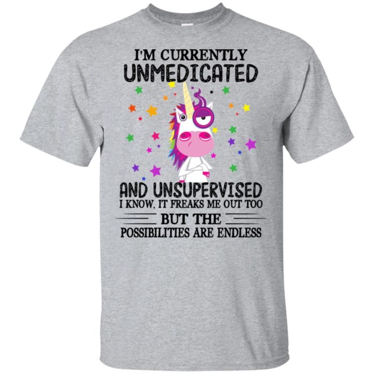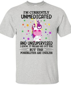 Unicorn I’m currently unmedicated and unsupervised shirt. Buy it now, from $19.99 and $3.99 shipping. This shirt available in t shirt, long sleeve, hoodie and multiple color.