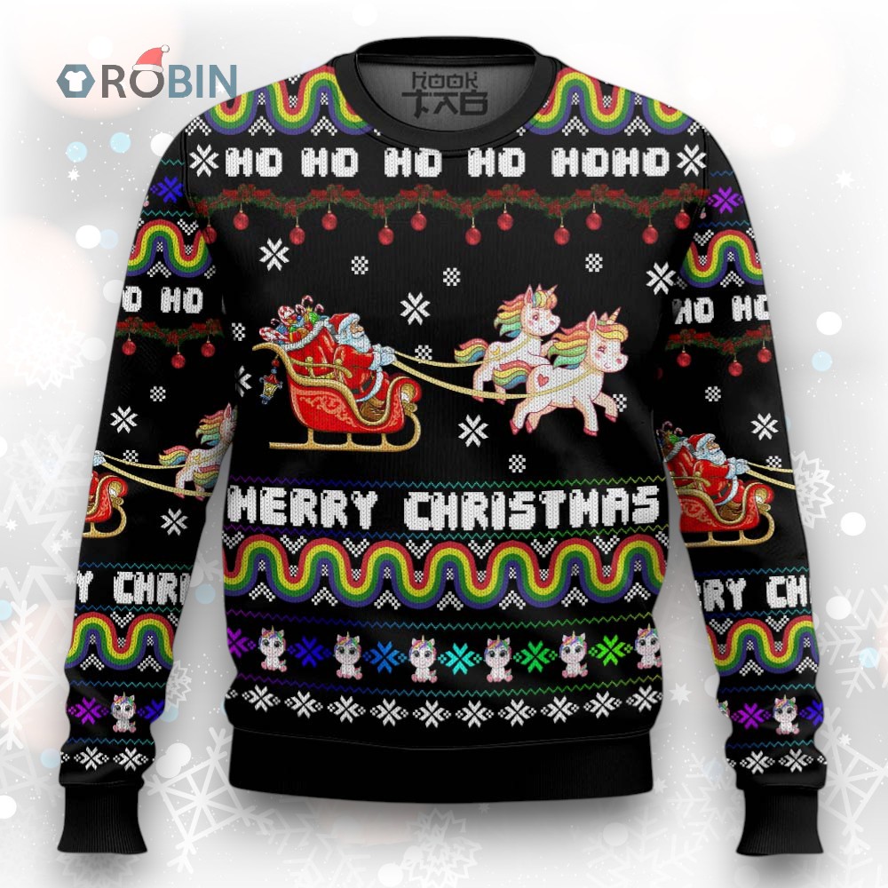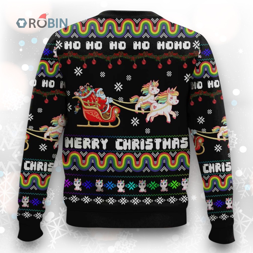 Spread some holiday magic with this adorably festive sweater! Featuring a whimsical unicorn design and a merry message, it's the perfect way to celebrate Christmas in style. Get ready to turn heads and spread joy this holiday season. Available now! 🎄🦄