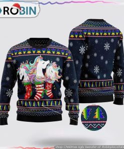 Unicorn Socks Xmas Christmas Ugly Sweater details