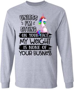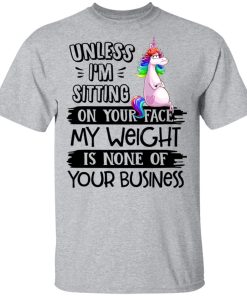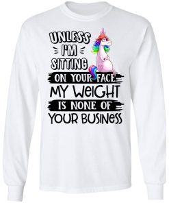 Unicorn Unless I’m Sitting On Your Face My Weight Is None Of Your Business Shirt. Available in t shirt, long sleeve, tank top, hoodie, sweatshirt and multiple color. If you want in another color please contact us. Quality control before delivery. Print: Digital printing, colors won’t fade or peel. The design is printed with new age printing technology. It is printed with a water – soluble and eco – friendly ink. Treat yourself, or make this shirt the perfect gift n birthdays, anniversaries, holidays, or give a gift to friend, yourself, or family, or for no reason at all.
