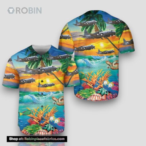 US Navy Lockheed EP 3E ARIES II Air Reconnaissance Squadron VQ 1 ''World Watchers'' Baseball Jersey features