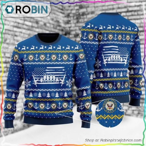 The US Navy Ugly Christmas Sweater is a festive and fun way for Navy personnel and their families to celebrate the holiday season. This sweater is designed with traditional Christmas colors and features iconic symbols of the Navy, such as anchors, ships, and the Navy logo. The sweater is intentionally made to look ugly with exaggerated patterns and bright colors, adding a touch of humor and lightheartedness to the holiday festivities. It is a popular choice for Navy personnel to wear during holiday parties, parades, and gatherings, as it allows them to proudly display their affiliation with the Navy while embracing the holiday spirit.