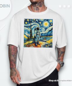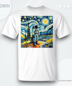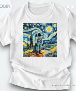 Step into the cosmos wearing a shirt that perfectly marries the timeless allure of Vincent Van Gogh's "Starry Night" with the adventurous spirit of space exploration. Imagine the swirls of the night sky interwoven with an intrepid astronaut, creating a visual masterpiece that captures both art lovers and space enthusiasts alike. This shirt is more than just a piece of fabric; it's an exploration of dreams, creativity, and the infinite possibilities of the universe. Embrace a world where legendary art meets cosmic adventure in your everyday wardrobe.