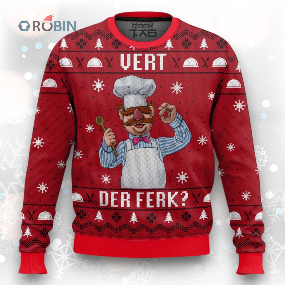 Get ready to say "Bork bork bork!" at your next holiday party! This festive sweater featuring everyone's favorite Swedish Chef is the perfect way to spread some Muppet cheer. It's cozy, hilarious, and guaranteed to win you the ugly sweater contest!