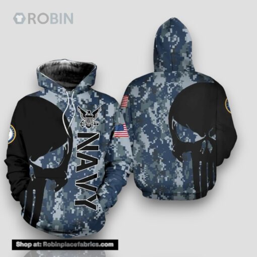 This bold and unique 3D hoodie is a must-have for any patriotic American with a love for the US Navy. The eye-catching black skull design on the left adds an edgy touch, while the all-over print creates a modern and stylish look. Made for both comfort and style, this hoodie is perfect for showing your support for our veterans in a fashionable way. Stand out from the crowd and honor the brave men and women who have served our country with this one-of-a-kind piece.