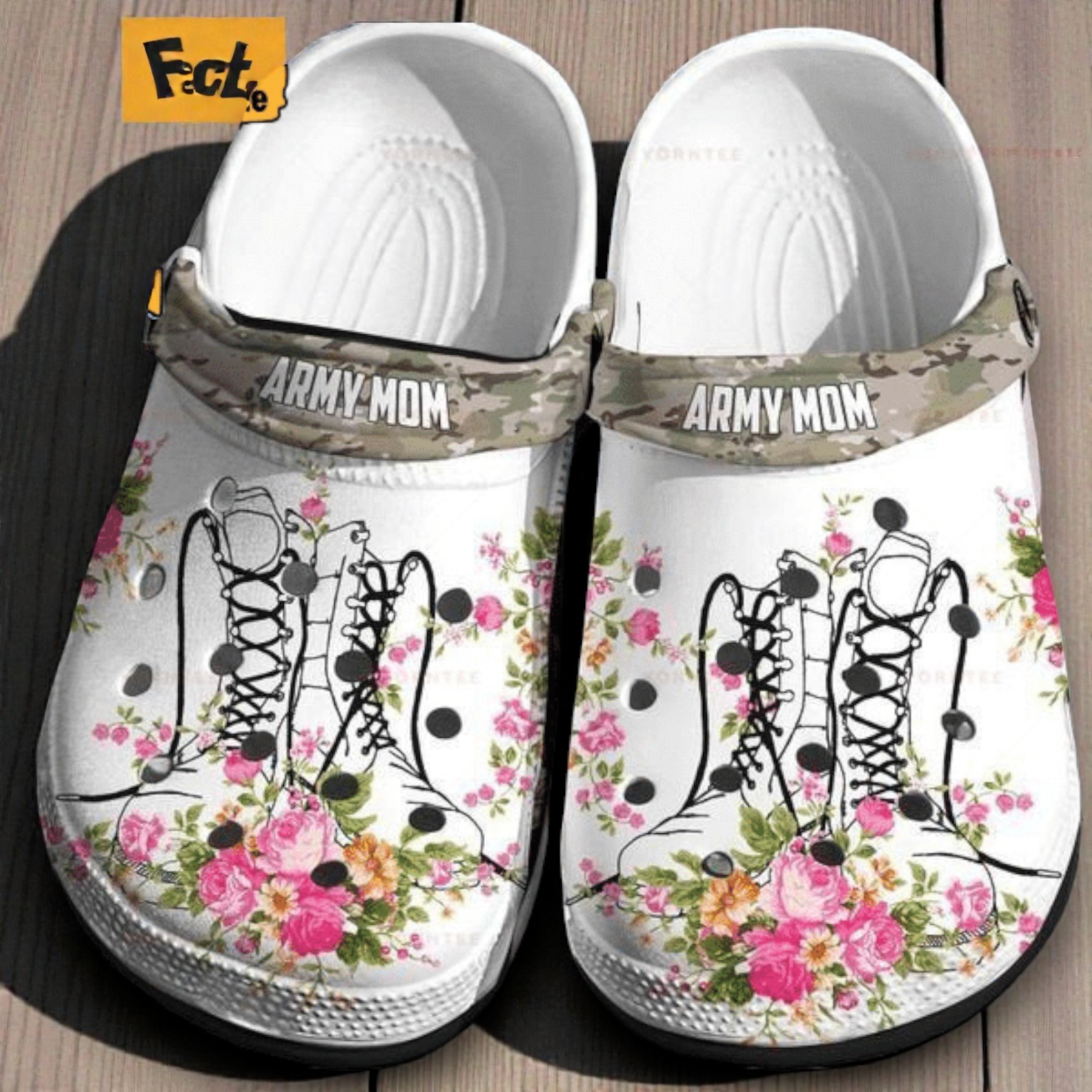 So I came across these clogs that really caught my eye, especially if you’re into something a little different but with a strong personal vibe. They’re white clogs covered in this unexpected mix of pink and orange floral prints, which gives them a cheerful, almost playful touch. But then, there’s also this cool twist—a camo strap with “ARMY MOM” stamped in bold white block letters. Plus, the side has black lace-up boot sketches that add a nice rugged contrast to those bright florals. It’s like this bold blend of military pride and a softer, floral look that really stands out without trying too hard. Honestly, I’m thinking anyone who’s part of a military family or knows a mom with that connection would really appreciate these. They feel like more than just shoes—they strike a good balance between making a statement and being a comfy, everyday kind of thing. If you know a mom who takes pride in her veteran or active-service family life, these would be a thoughtful way for her to quietly show that side of herself. They seem perfect for casual outings or even just to wear around the house, especially on days when you want something laid-back but still meaningful. Honestly, it’s a gift idea that feels personal without being overly sentimental, ideal for birthdays, Mother’s Day, or just because you want to remind someone you’re thinking of them in a way that fits their style. The ARMY MOM shoes theme comes through in a way that’s playful and supportive, not over-the-top, which I really appreciate.