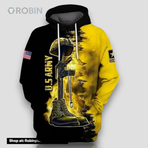 Veteran U.S Army Veteran Black And Golden Fire 3D Hoodie All Over Printed features