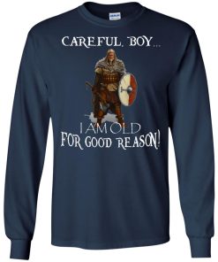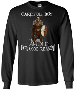 Viking – Careful boy I am old for good reason Viking axe & shield version shirt. This shirt available in unisex t shirt, long sleeve, hoodie and multiple color.