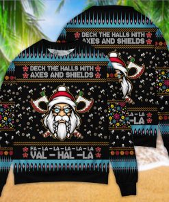 Get ready to celebrate the holiday season in true Viking style with the awe-inspiring Viking Christmas Deck The Halls With Axes And Shields Ugly Sweater Sweatshirt. This unique and eye-catching sweater features a festive design that combines Christmas elements with iconic Viking imagery. The front of the sweater showcases an intricate pattern of holiday decorations, such as lights and ornaments, intertwined with detailed illustrations of axes and shields. Made with high-quality materials, this sweatshirt is not only cozy and warm, but it also makes a bold fashion statement. Embrace your inner Viking and spread the holiday cheer in a truly unforgettable way with this extraordinary sweater.