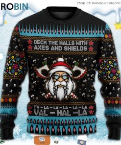 Viking Christmas Deck The Halls With Axes And Shields Christmas Ugly Sweater, Sweatshirt details
