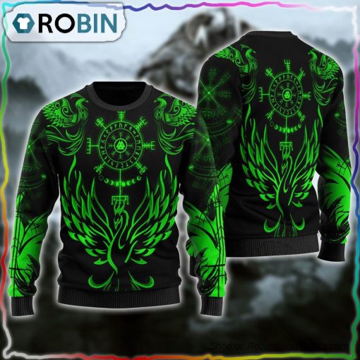 Viking Phoenix Vegvisir Green Ugly Christmas Sweater details