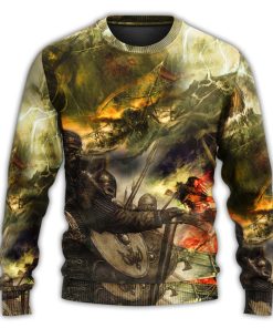 This festive sweater is a unique and eye-catching addition to any Christmas wardrobe. With its bold and attention-grabbing design, it is sure to turn heads at any holiday gathering. The Viking-inspired motif adds a touch of warrior spirit to the traditional Christmas sweater, giving it a cool and edgy vibe. Although its appearance may be unconventional, it boasts a certain charm that is bound to make an impression. The combination of lightning bolts and Viking symbols creates a powerful and energetic look, perfect for those who want their Christmas attire to make a statement.