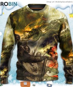 Viking War Lightning Cool Ugly Christmas Sweater details