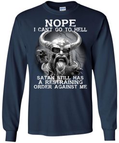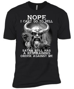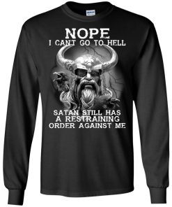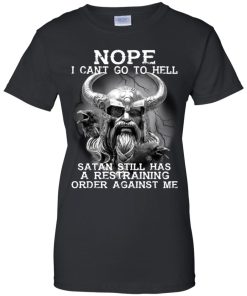 Viking Warrior Nope I Can’t Go To Hell Satan Still Has A Restraining Order Against Me shirt. This shirt available in unisex t shirt, long sleeve, hoodie and multiple color. Buy it now, from $19.99 and $3.99 shipping.
