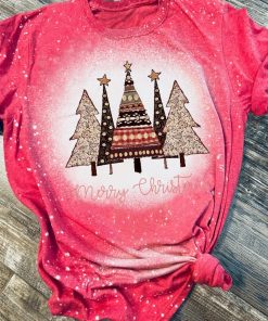 Vintage Christmas Tree Merry Christmas Bleached T-Shirt