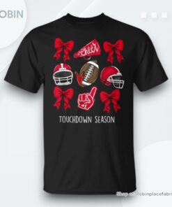 Step into game day glory with a shirt that screams timeless charm and spirited enthusiasm! Ideal for passionate fans and nostalgic souls alike, this unique piece brings together classic football vibes with a dash of playful elegance. Its chic design and comfortable fit make it perfect for cheering your heart out or reliving memorable seasons of the past. Wear it to show your undying team spirit and be the coquette of the crowd!