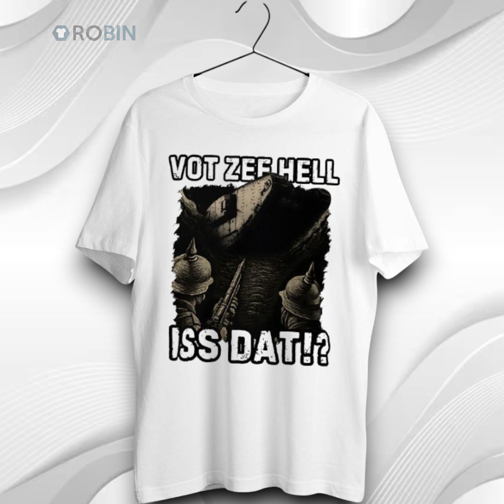 This shirt captures the genuine confusion and terror of the first tank encounter with a hilarious twist. Featuring a gritty illustration of German soldiers in Pickelhaube helmets staring down a British Mark I tank, it perfectly sums up the moment warfare changed forever. The phonetic text—"VOT ZEE HELL ISS DAT!?"—adds a layer of humor that any history nerd will appreciate.