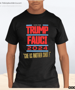 The Vote For Trump Fauci Give Us Another Shot 2024 Shirt is a political statement communicated through a piece of apparel. It likely features a design that supports former President Donald Trump and criticizes Dr. Anthony Fauci. The message is likely a call to action for the 2024 election, indicating a desire for a second chance with Trump as president. The shirt serves as a way for individuals to display their political beliefs and potentially spark conversations about current events and political figures.