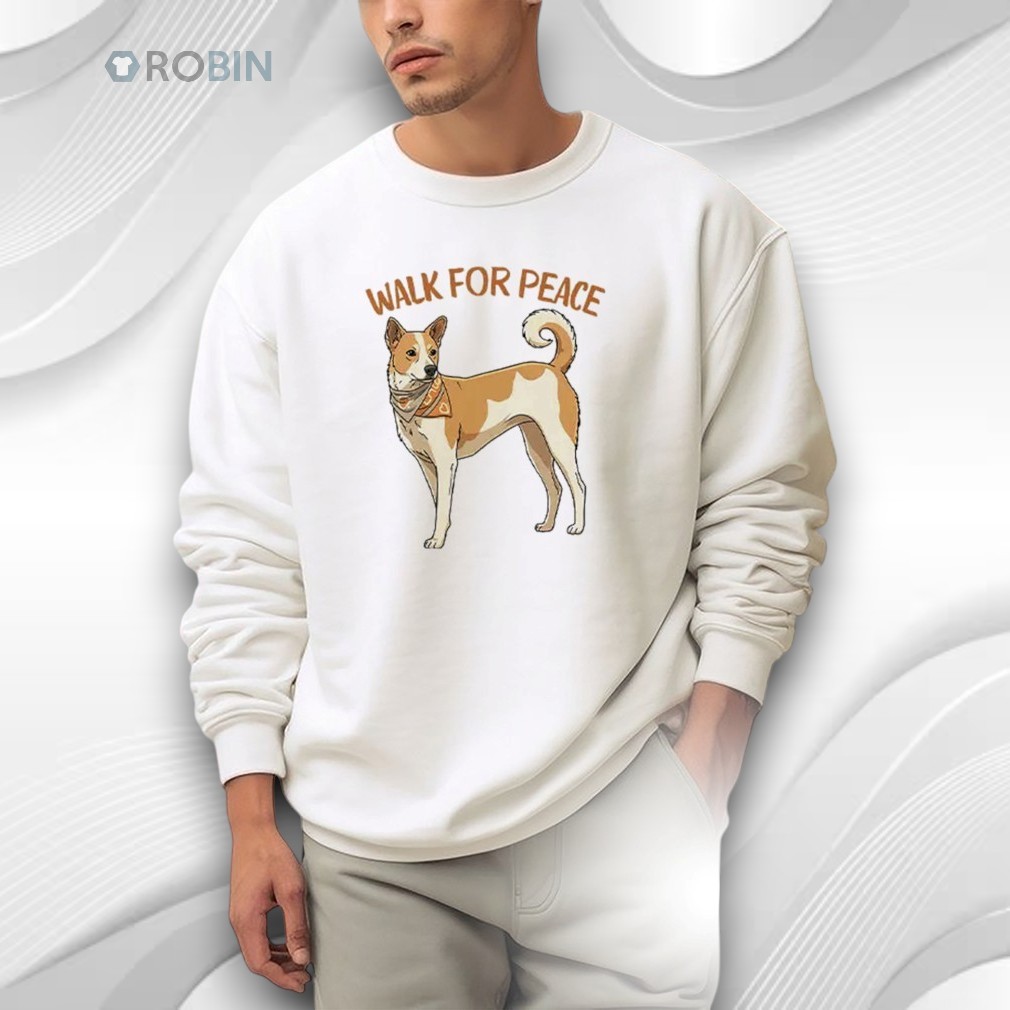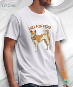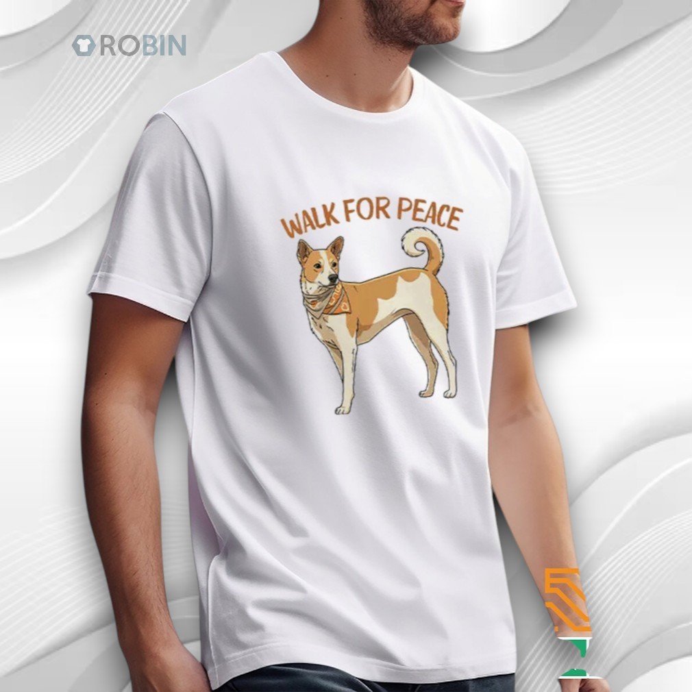 This charming Walk for Peace shirt features a friendly illustrated dog wearing a bandana, standing proudly beneath the peaceful message “Walk for Peace.” The warm, gentle artwork and simple slogan create a positive, uplifting vibe that celebrates kindness, compassion, and love for animals.