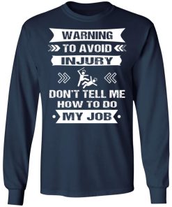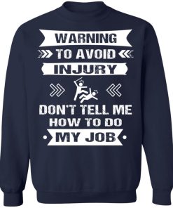 Warning To Avoid Injury Don’t Tell Me How To Do My Job Shirt. Available in t shirt, long sleeve, tank top, hoodie, sweatshirt and multiple color. If you want in another color please contact us. Quality control before delivery. Print: Digital printing, colors won’t fade or peel. The design is printed with new age printing technology. It is printed with a water – soluble and eco – friendly ink. Treat yourself, or make this shirt the perfect gift n birthdays, anniversaries, holidays, or give a gift to friend, yourself, or family, or for no reason at all.