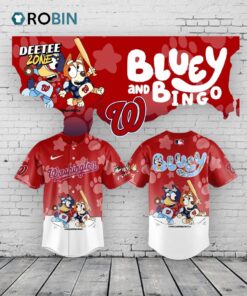 Batter up! Get ready to cheer on the Washington MLB with this adorable Bluey and Bingo-inspired baseball jersey shirt! Perfect for young fans who love baseball and the Heeler family. Show your team spirit in style!