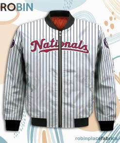 Washington Nationals MLB Uniform Stripes Custom Name Number Leather Bomber Jacket imamges