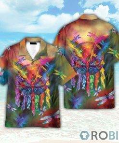Watercolor Dragonfly And Dreamcatcher Hawaiian Shirt features