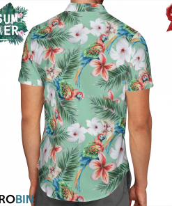 Watercolor Parrots and Hibiscus, Palm Hawaiian Shirt