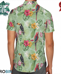 Watercolor Toucan And Parrot Hawaiian Shirt
