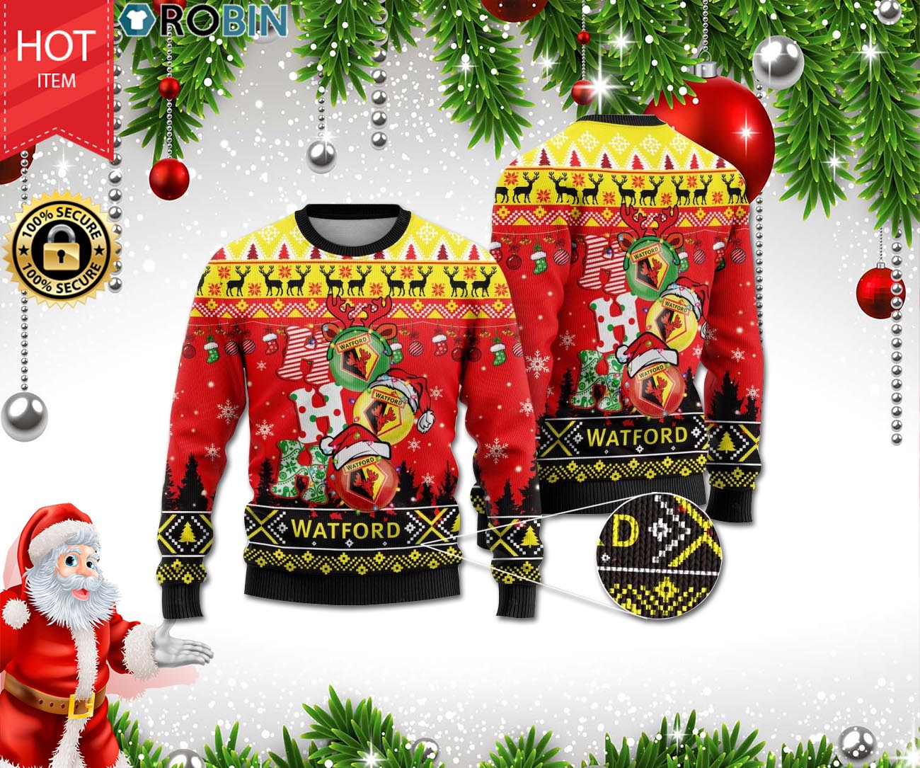 Watford Ho Ho Ho 3D Print Christmas Wool Sweater