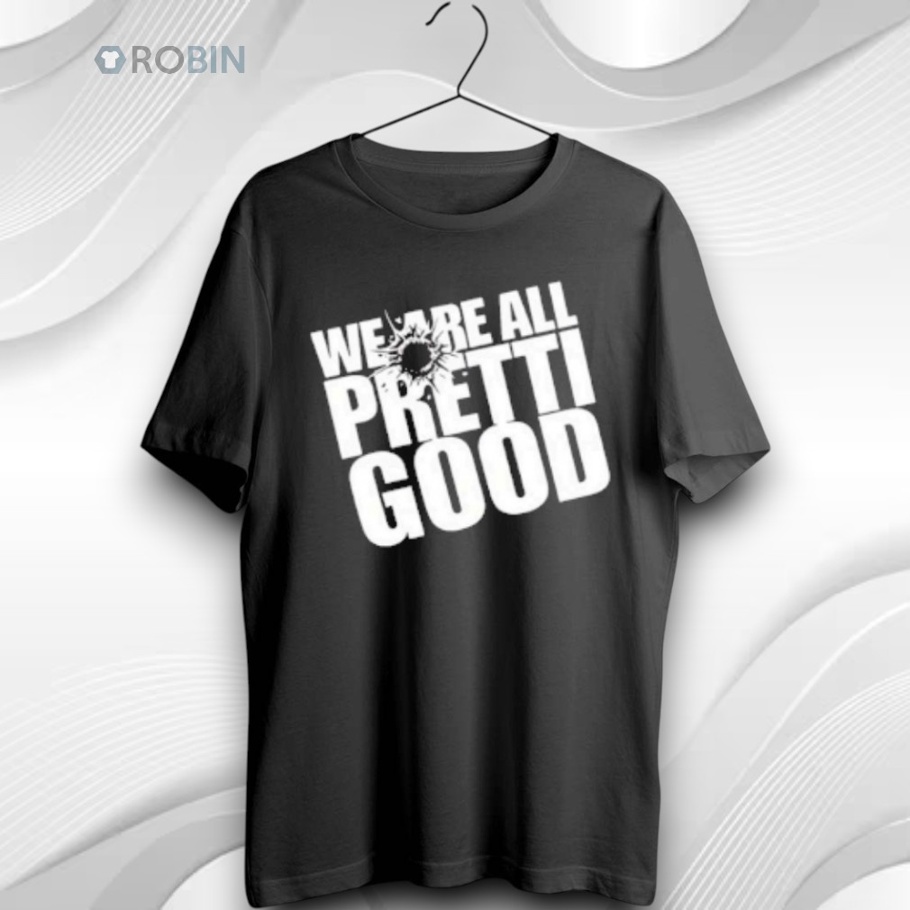 This shirt combines a clever play on words with a gritty, resilient aesthetic. Featuring the phrase "WE ARE ALL PRETTI GOOD" in bold, distressed lettering, the design is punctuated by a dramatic impact mark that shatters the text. It’s a visual metaphor for staying strong (and keeping a sense of humor) even when things get chaotic.