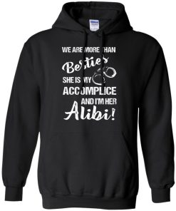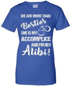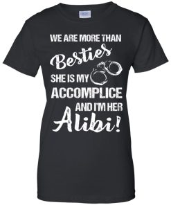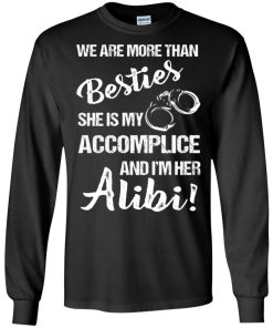 We are more than besties she’s my accomplice and I’m her alibi shirt. Buy it now, from $19.99 and $3.99 shipping. This shirt available in t shirt, long sleeve, hoodie and multiple color.