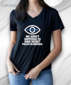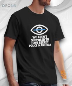 This bold statement shirt features a striking eye symbol paired with the powerful message “We Aren’t Supposed to Have Secret Police in America.” The minimalist graphic and clean typography give the design a modern, impactful look that immediately draws attention.