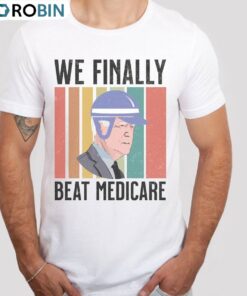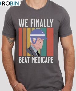 We Finally Beat Medicare Shirt, Unique Biden Quote Short Sleeve Crewneck