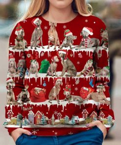 This Weimaraner – Snow Christmas Ugly Sweatshirt available in adult and youth size.