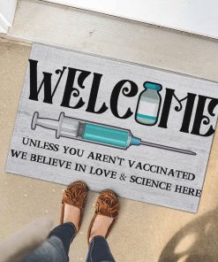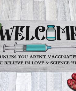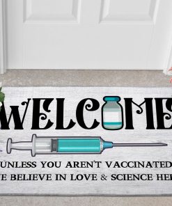 Welcome Unless You Arent Vaccinated We Believe In Love And Science Here Doormat