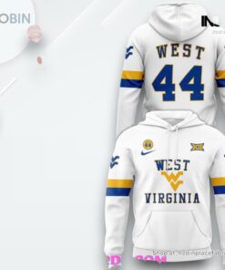 West Virginia Mountaineers Jerry West 44 White Hoodie features
