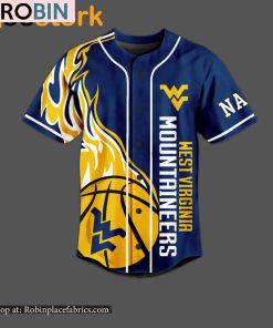 West Virginia Mountaineers Mountain Strong Custom Baseball Jersey features