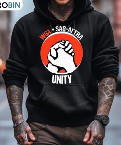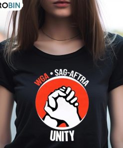 The WGA SAG AFTRA Unity Together T Shirt is a stylish and meaningful statement piece that shows solidarity with the acting, writing, and technical professionals who make up the entertainment industry. It features a bold, modern design with the names of the labor unions that protection the rights of those professionals. The brightly-colored black and red shirt features a classic fit with a slightly curved hem and a crew neck. The back of the shirt displays the powerful message, Unity Together in red. This t-shirt is perfect for those who want to show their support for the entertainment industry and stand up for the rights of all performers.